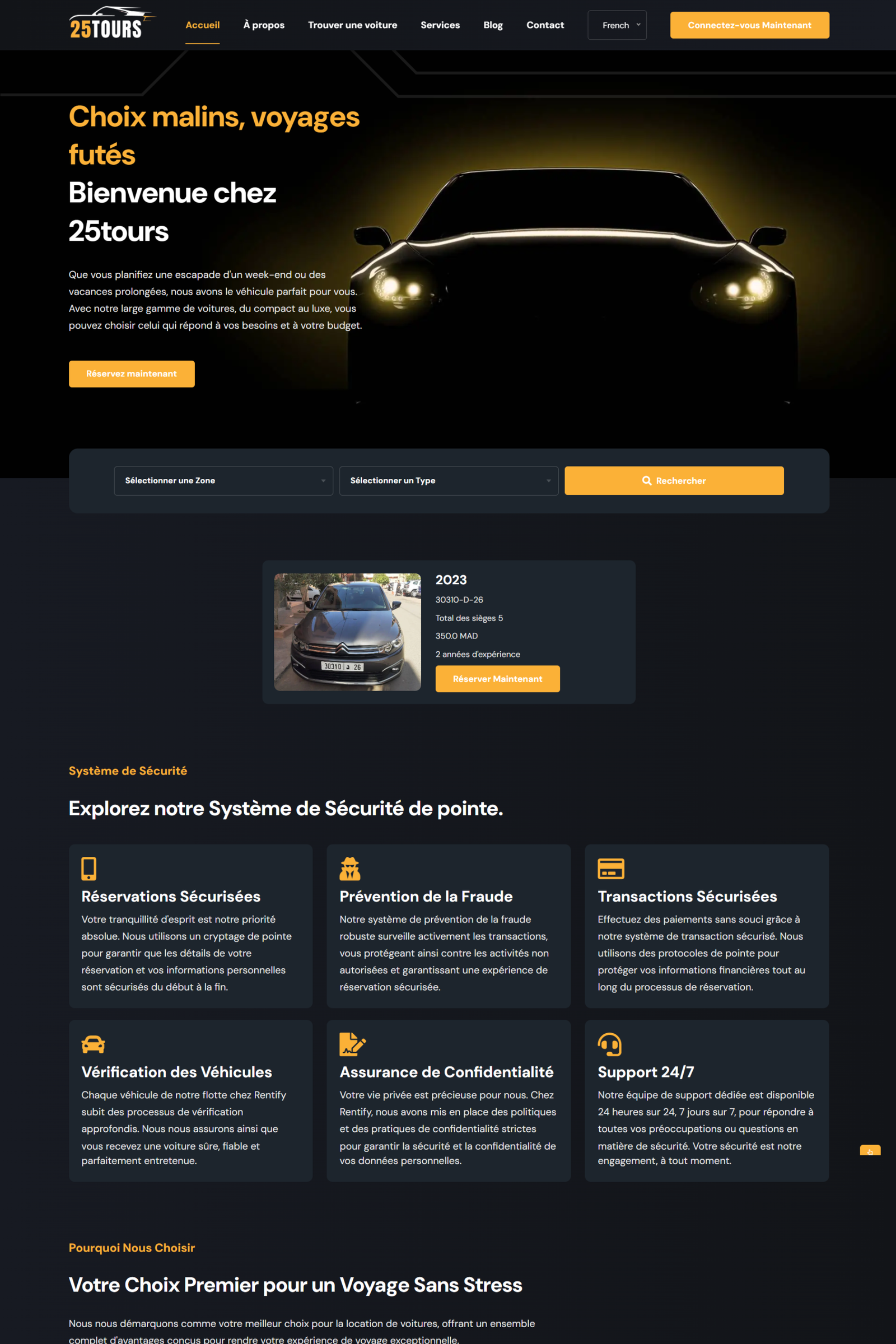 As the developer of 25tours.com, I created a user-friendly car rental platform tailored to meet the needs of travelers in Morocco. Utilizing WordPress and Elementor, I designed a responsive and visually appealing website that ensures a seamless rental experience across all devices. The site features an easy-to-navigate interface, allowing users to quickly find and book the perfect vehicle for their trip.
