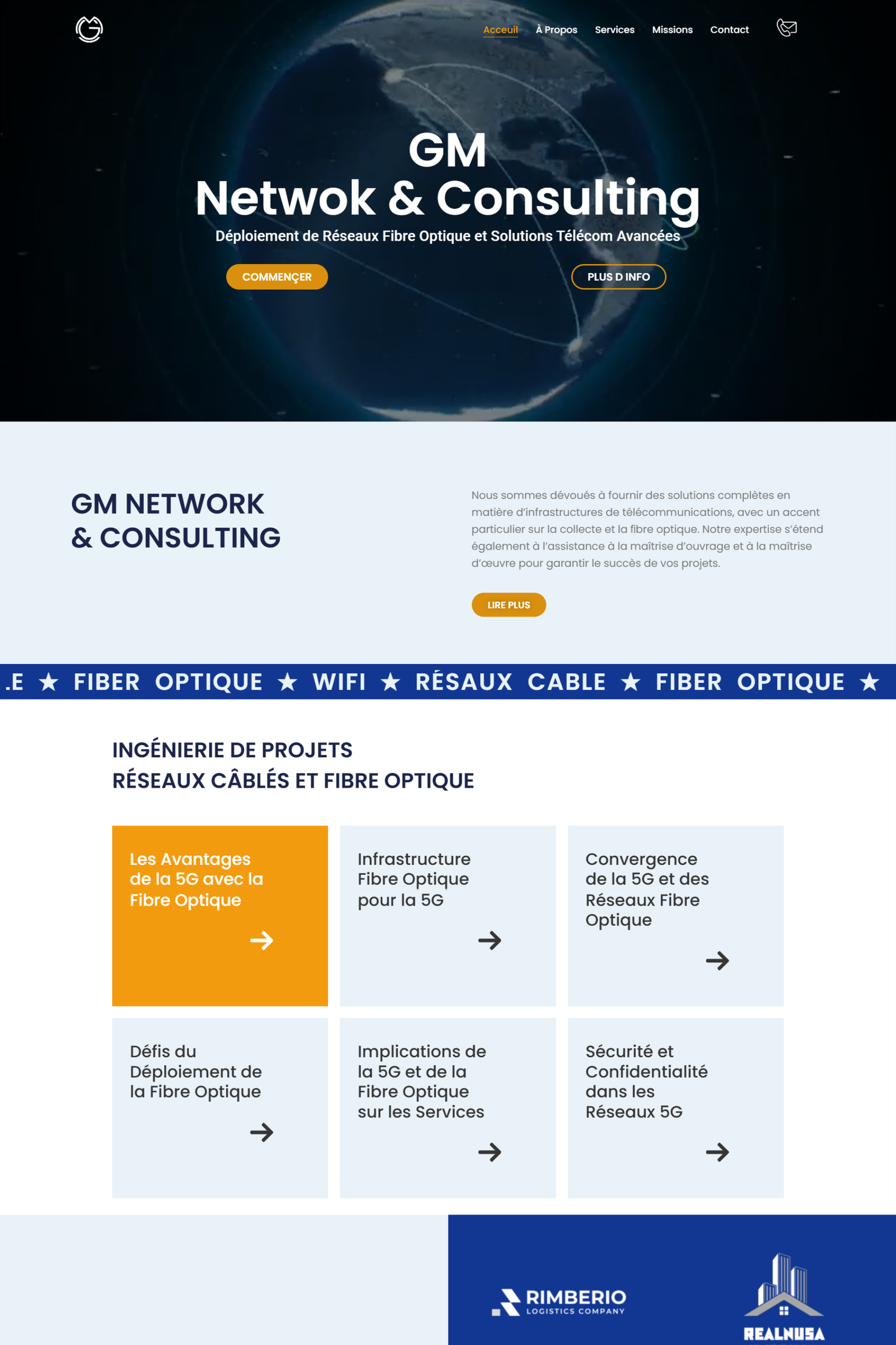 As the developer of GM Group’s website, I created a professional and informative platform specializing in fiber optic installation and advanced telecom solutions. Built with WordPress and Elementor, the site is designed to showcase GM Network & Consulting’s expertise in deploying comprehensive telecommunication infrastructures. It features a clean, user-friendly interface that highlights their services, mission, and industry knowledge.